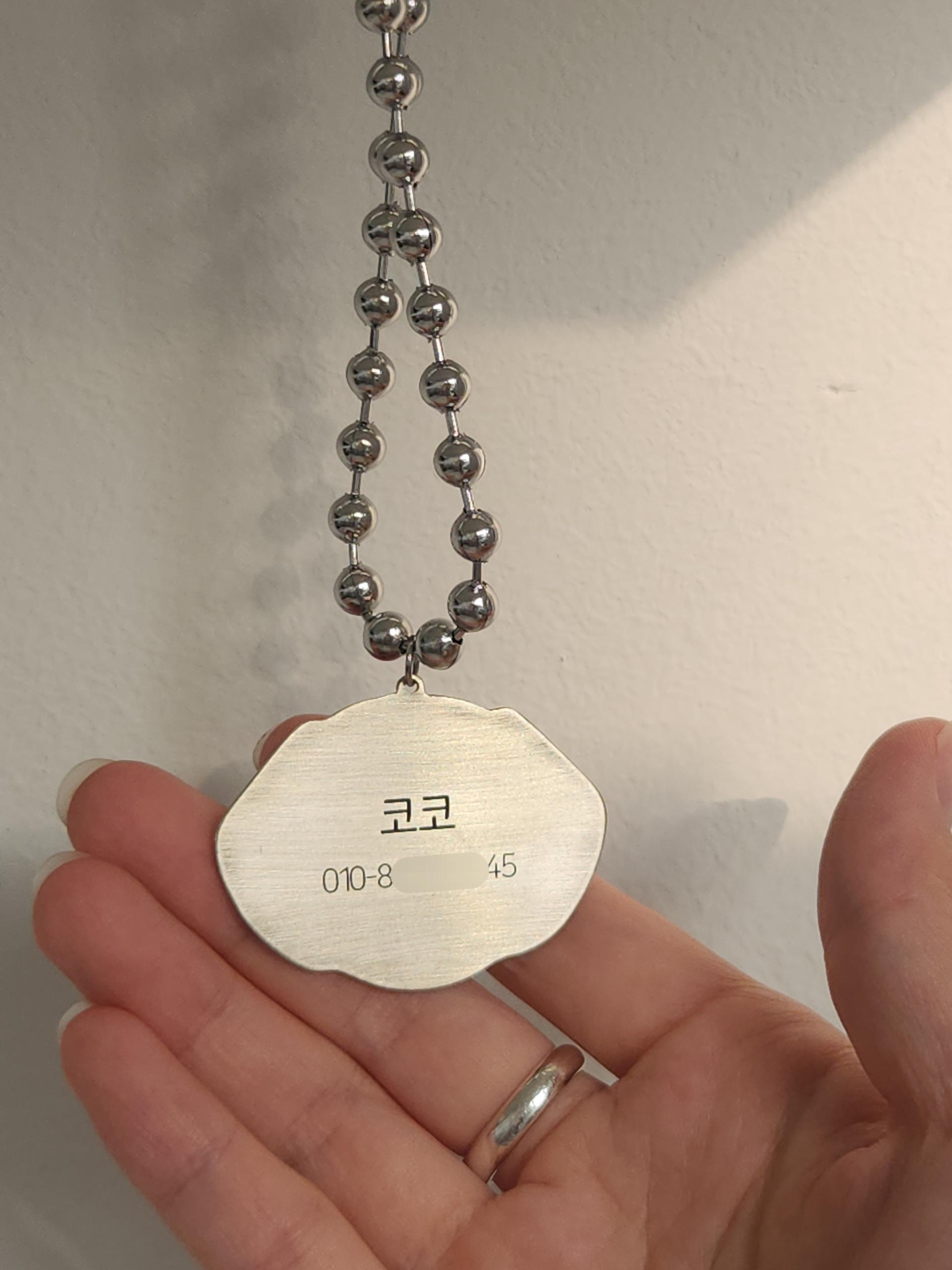 뒷면에는 이름, 연락처는 물론, 동물인식번호나 짧은 문구도 새길 수 있어요.